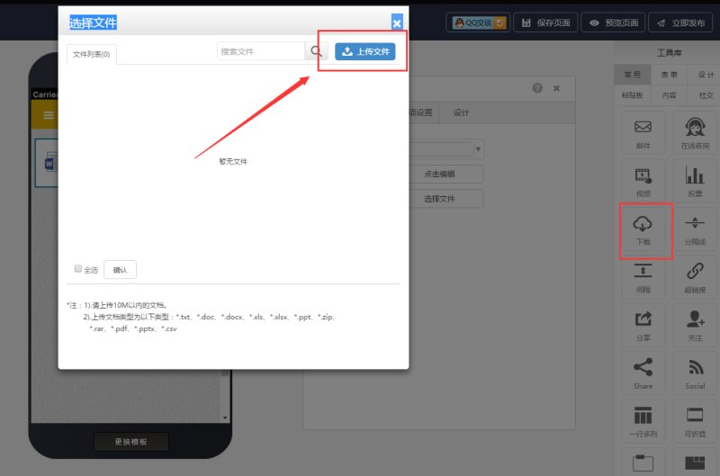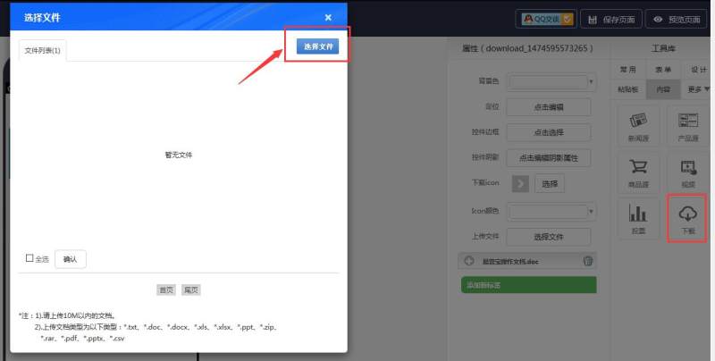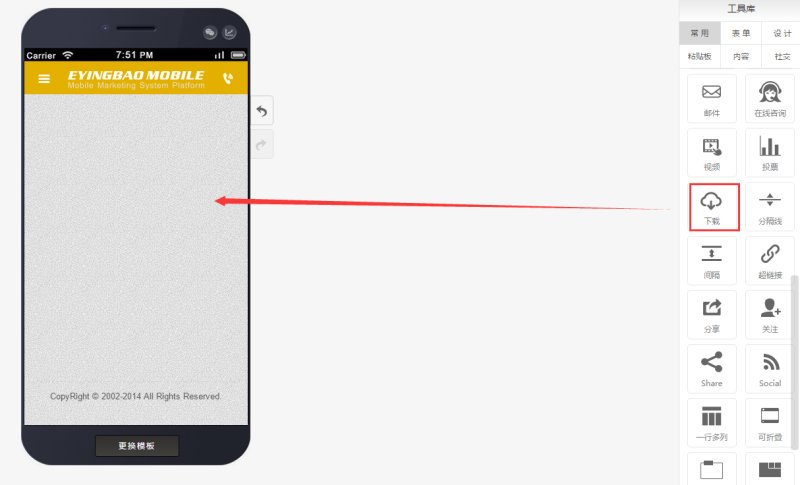 第一步:工具库里,选择内容控件下的下载控件拖拽到操作区,如下图: