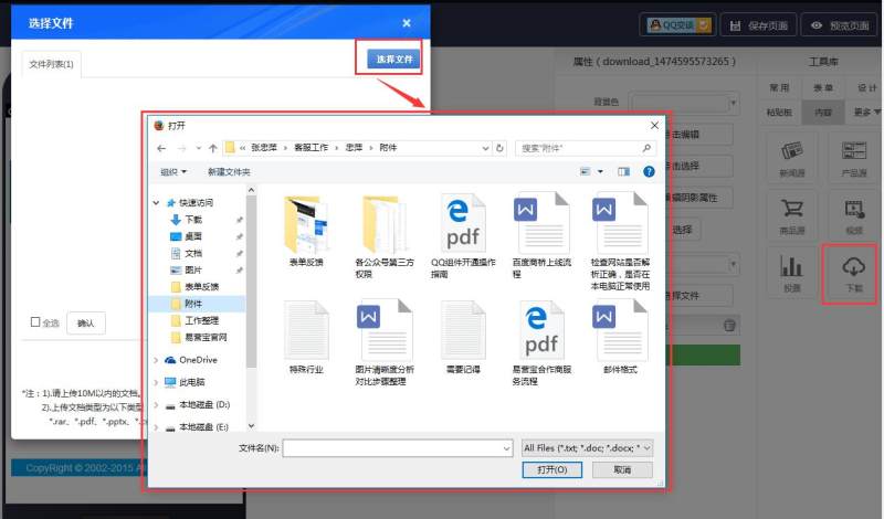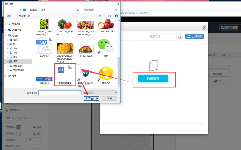 第三步:点击“选择文件”在电脑内找到你所需上传的文件,并双击该文件或者点击下方打开按钮进行上传文件,如下图: