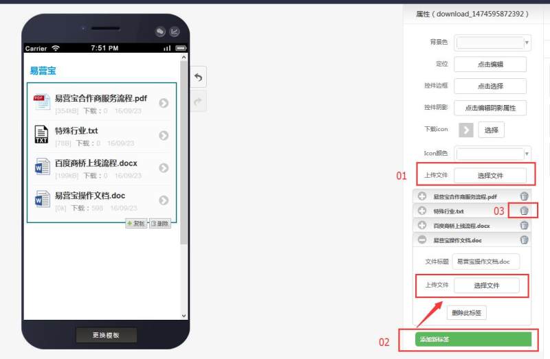 第六步:如果需要继续增加下载的文件,可以通过两种方式,01直接点击“选择文件”,02选择“添加新标签”,然后点击展开新添加的标签,选择文件进行上传即可
