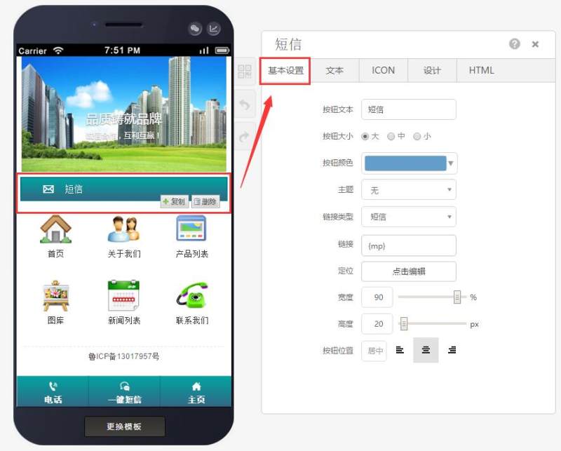 第三步:可自己在基本设置中设置按钮大小、背景色颜色、电话号码、高度/宽度、按钮位置等,如下图: