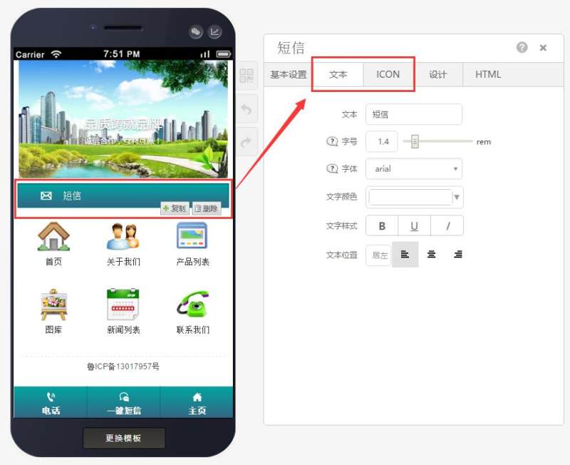 第四步:根据自己的需求调整文本,更换icon图标,有黑、白、彩色三个类型的图标或者自定义(需上传无背景的png图标),如下图: