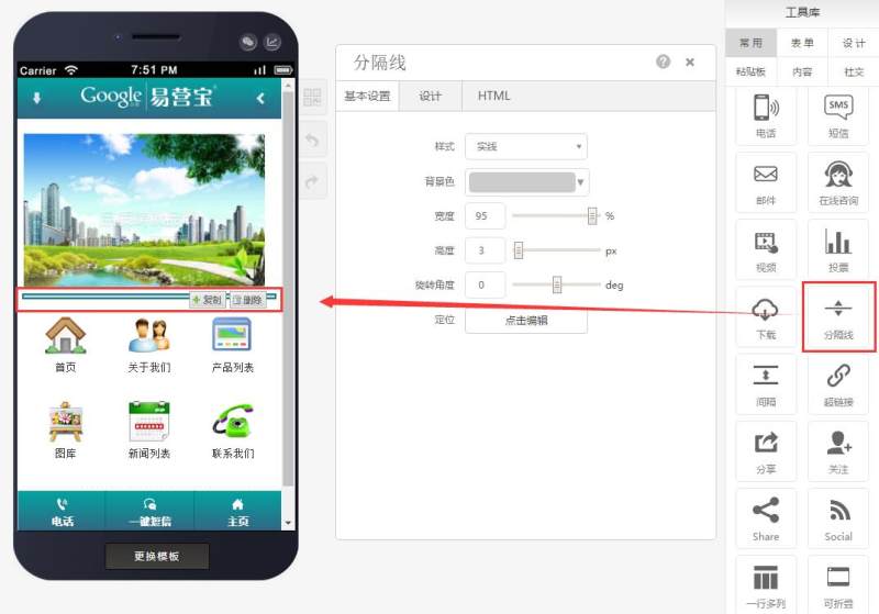 第一步:拖拽一个分隔线控件到需要的页面中,如下图: