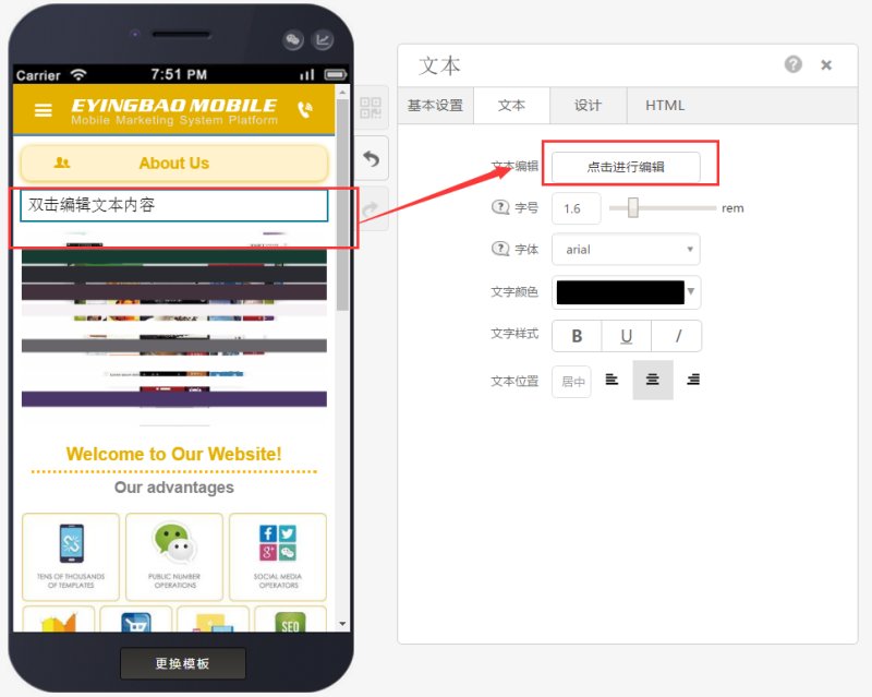 双击内容或点击文本设置里的“点击进行编辑”来输入文字。(输入的文字要求无格式,建议在记事本中复制黏贴,复制过程中,行与行之间不得有空格)