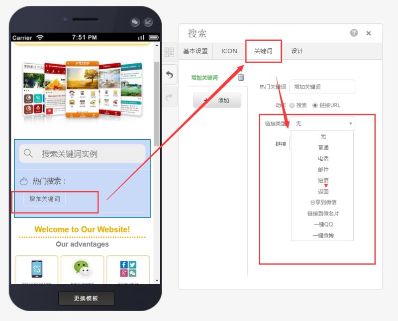 可以添加关键词,选择URL跳转,用户点击的时候可以直接跳转到的所设置好的超链接中。