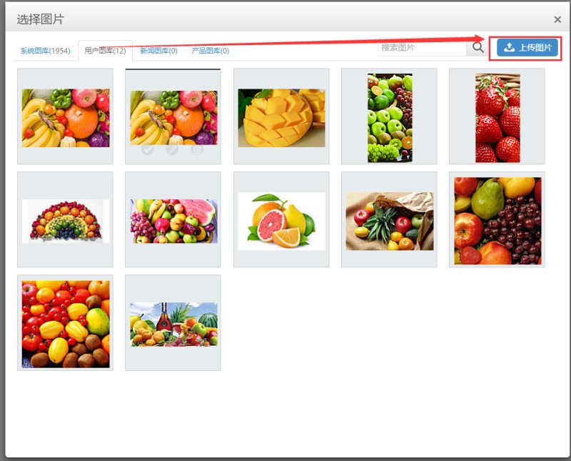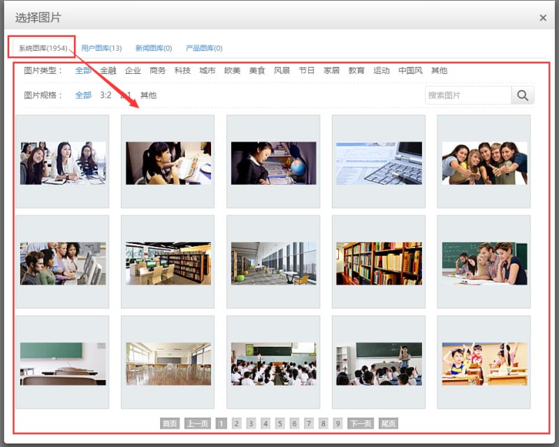 图片可以在“系统图库”里进行选择,也可以自行上传。系统图库: