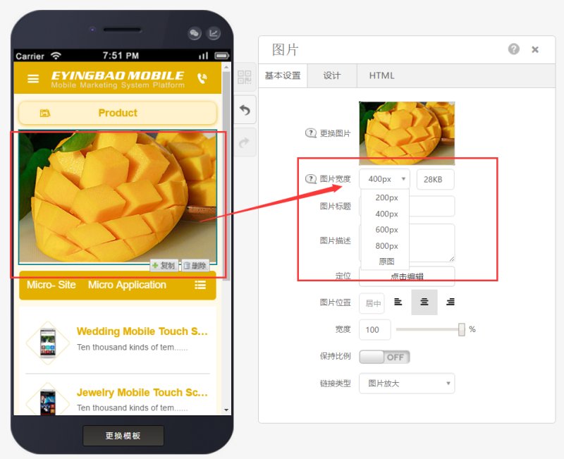 图片添加成功后可以调整“图片宽度”用来设置图片预览的清晰度。