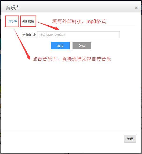 第二步:选择音乐(可以选择音乐库的音乐,也可以添加自己的音乐,添加外部链接),如下图: