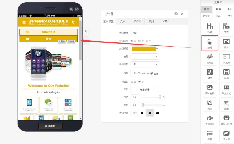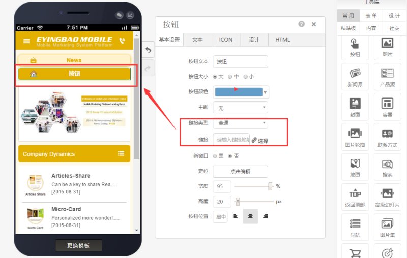 有需要时也可以给按钮设置链接类型、具体连接到的位置,如下图: