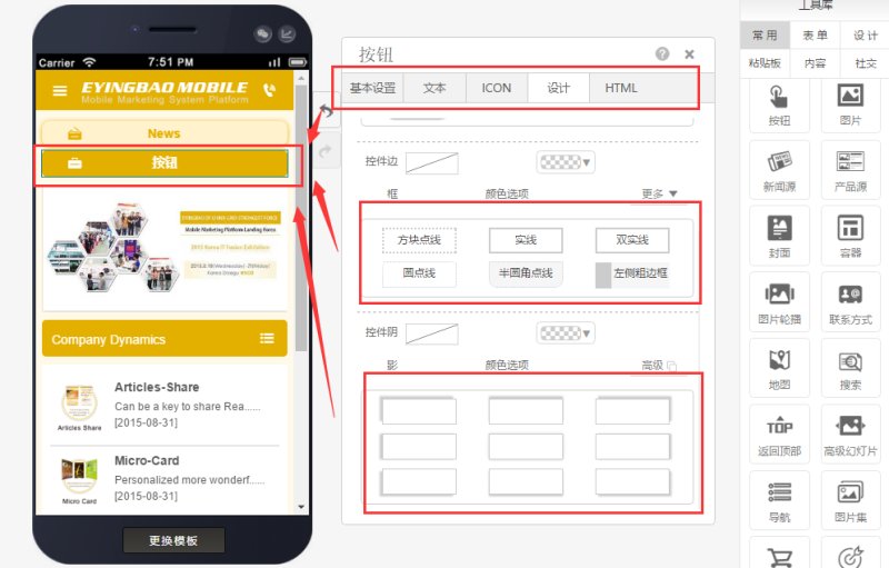 在页面中添加按钮控件,有多种样式可选,还可自定义图标。