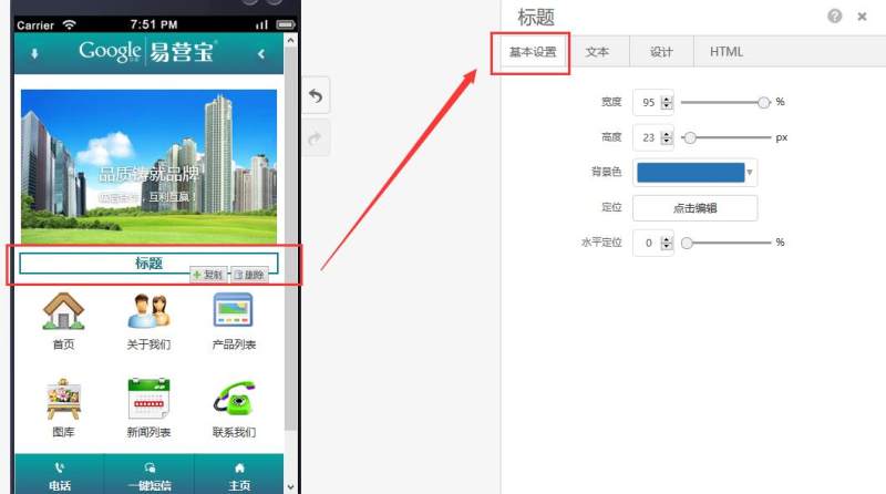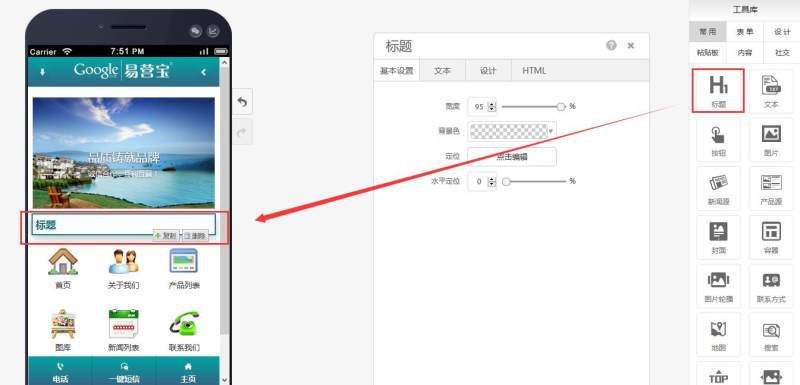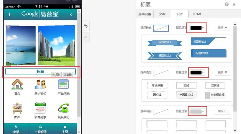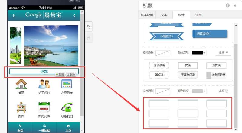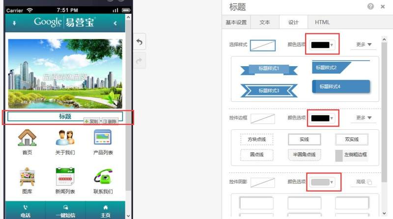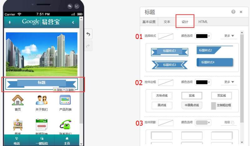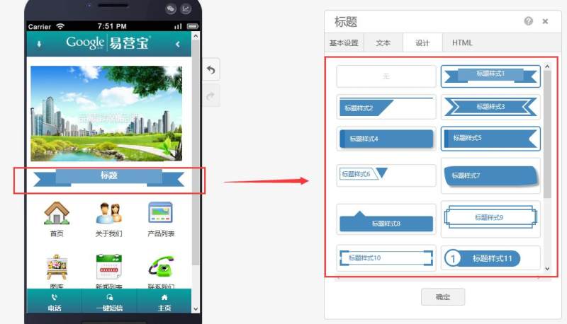 在页面中添加标题控件,有多种样式可选。