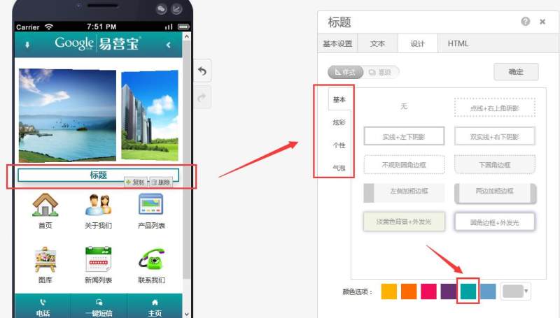 第二步:根据自己的需求进行设计,,也可以添加边框或者阴影,并对其更改颜色,如下图: