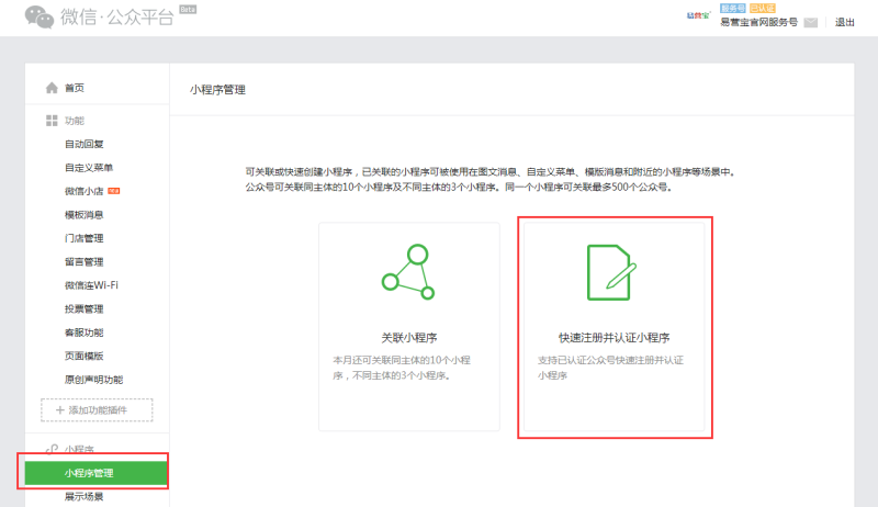 微信公众号里快速注册小程序