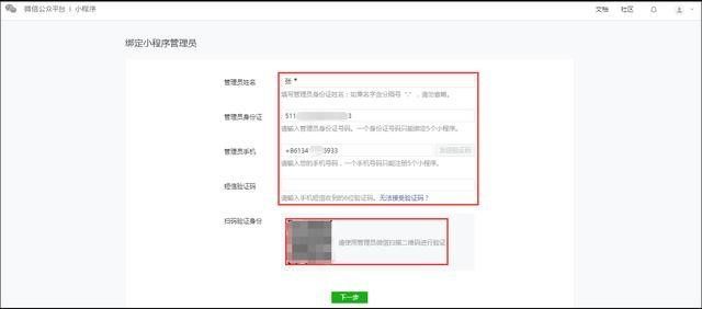 7, 填写管理员信息并验证手机及微信