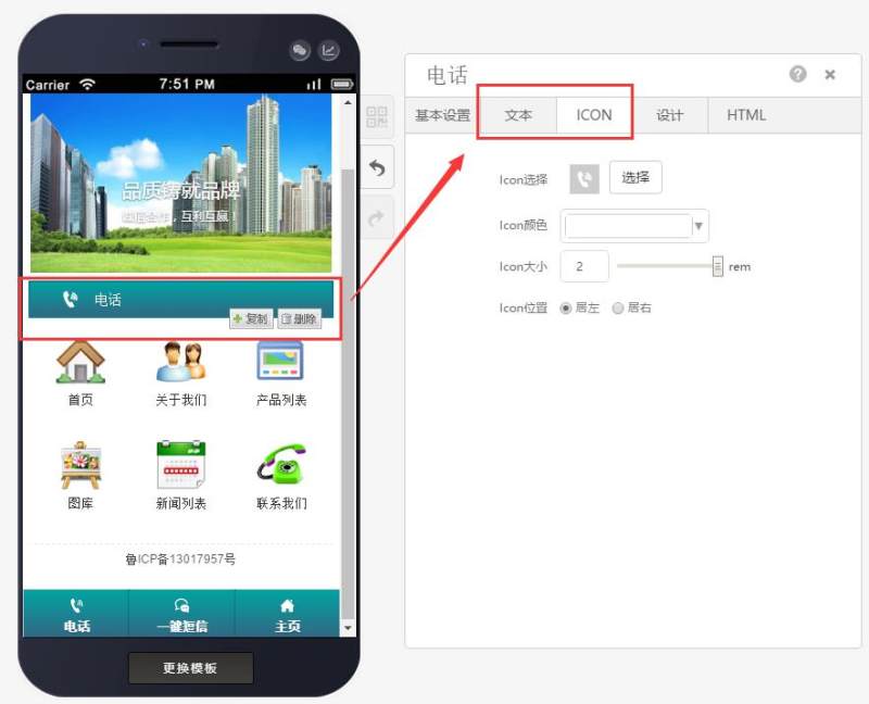 第四步:根据自己的需求调整文本,更换icon图标,有黑、白、彩色三个类型的图标或者自定义(需上传无背景的png图标),如下图: