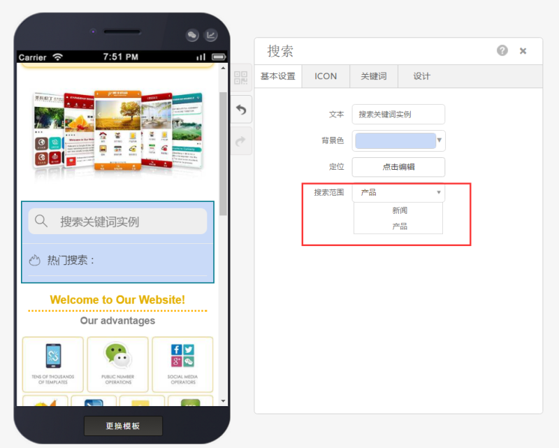 功能介绍:搜索功能可以让用户直接找到目标产品或新闻,免去繁琐的点击,增强用户体验度。