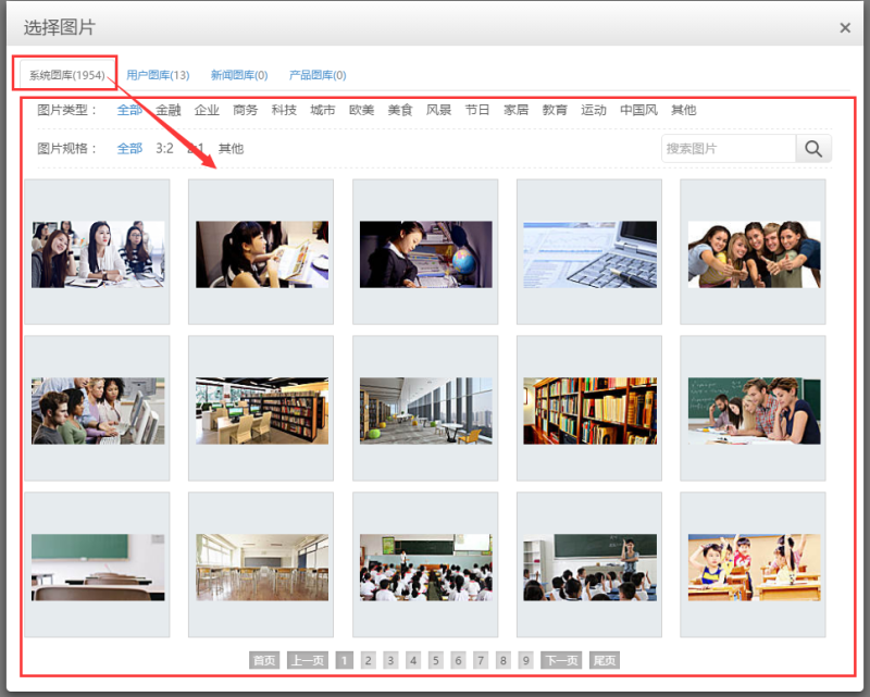 图片可以在“系统图库”里进行选择,也可以自行上传。系统图库: