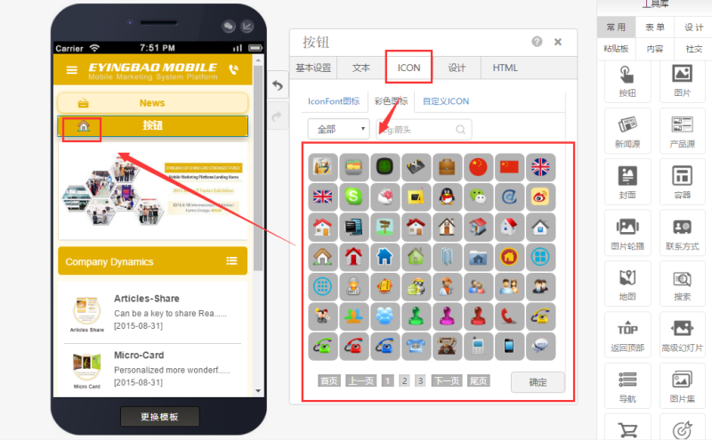 第四步:根据自己的需求更换icon图标,有黑、白、彩色三个类型的图标或者自定义(需上传无背景的png图标),如下图: