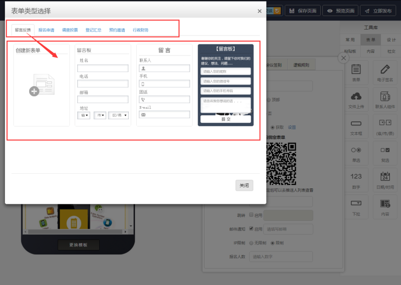 在页面中添加表单控件,使报名或者留言更加清晰。